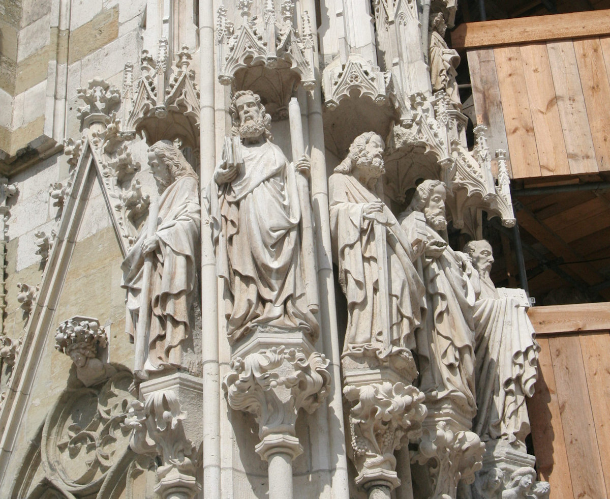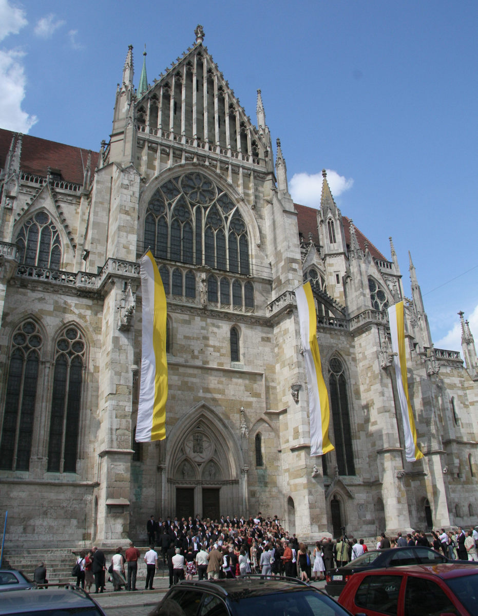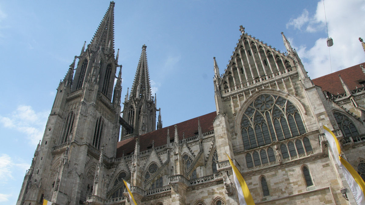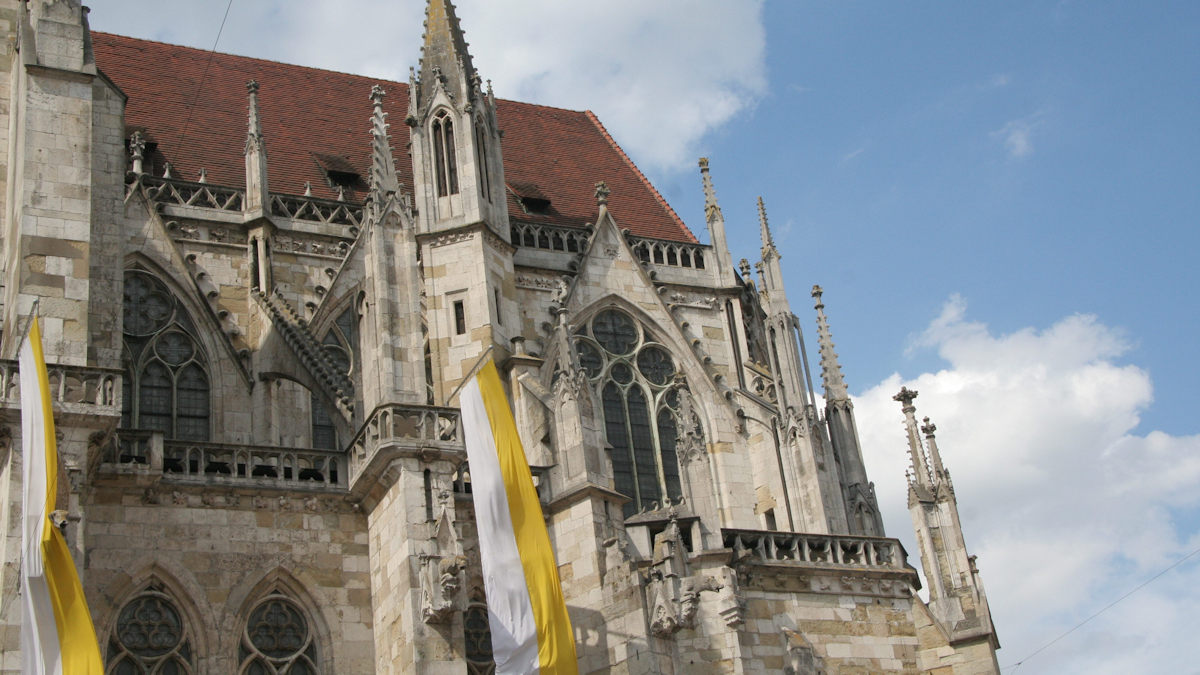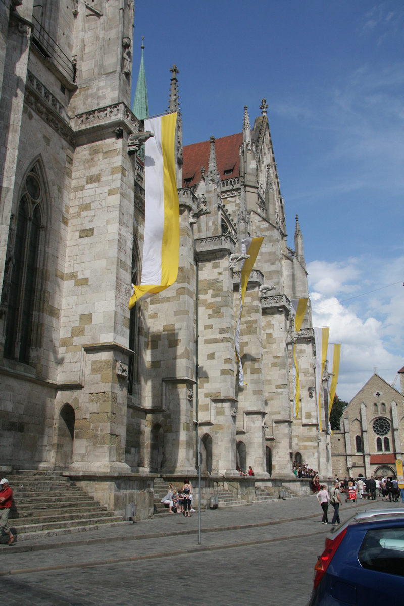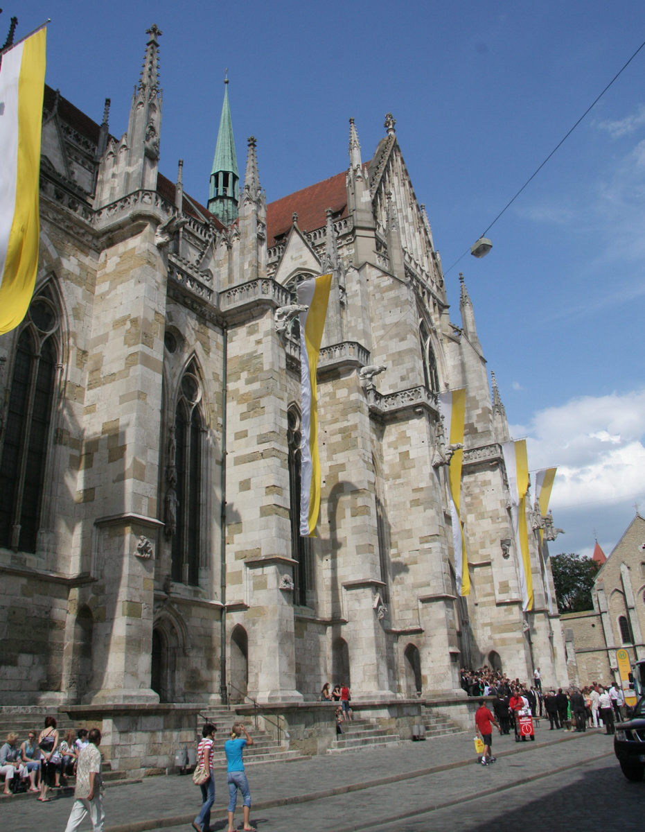 Approaching St. Peter's Cathedral with its massive buttresses |