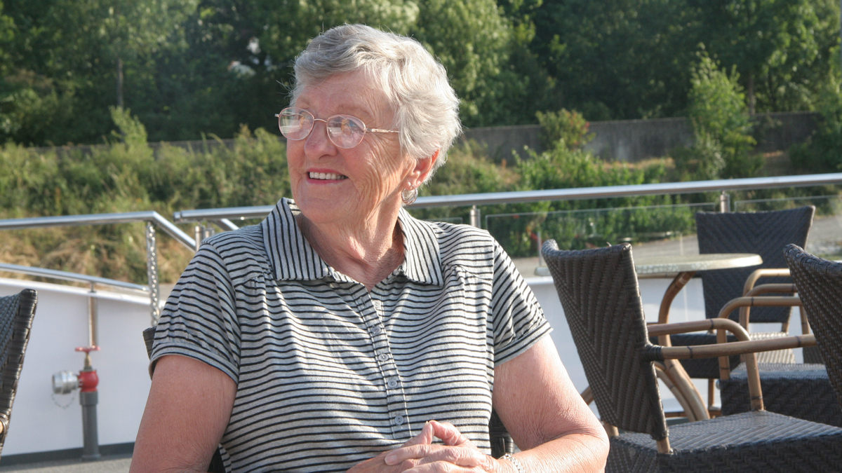 Close-up of beautiful Mary enjoying a rest on board the Swiss Sapphire |