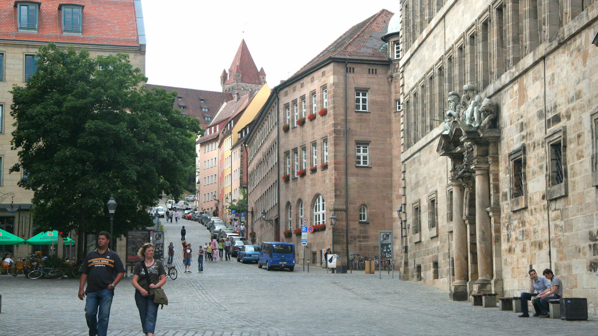 Walking the steets near Frauenkirche Hauptmarkt (church square) to come |